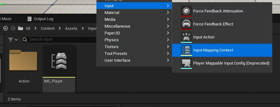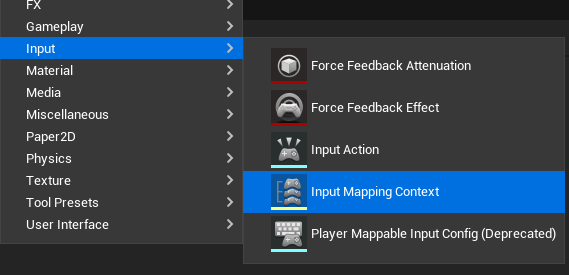 Input Mapping Context는 Input Action과 바인딩하는 역할을 한다.