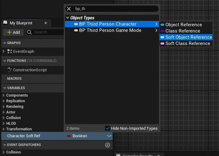 약 참조를 사용한 액터는 BeginPlay가 호출되어 3인칭 캐릭터를 사용하게 되면 로드되어 강 참조와 같은 메모리를 사용하게 될 것이다.