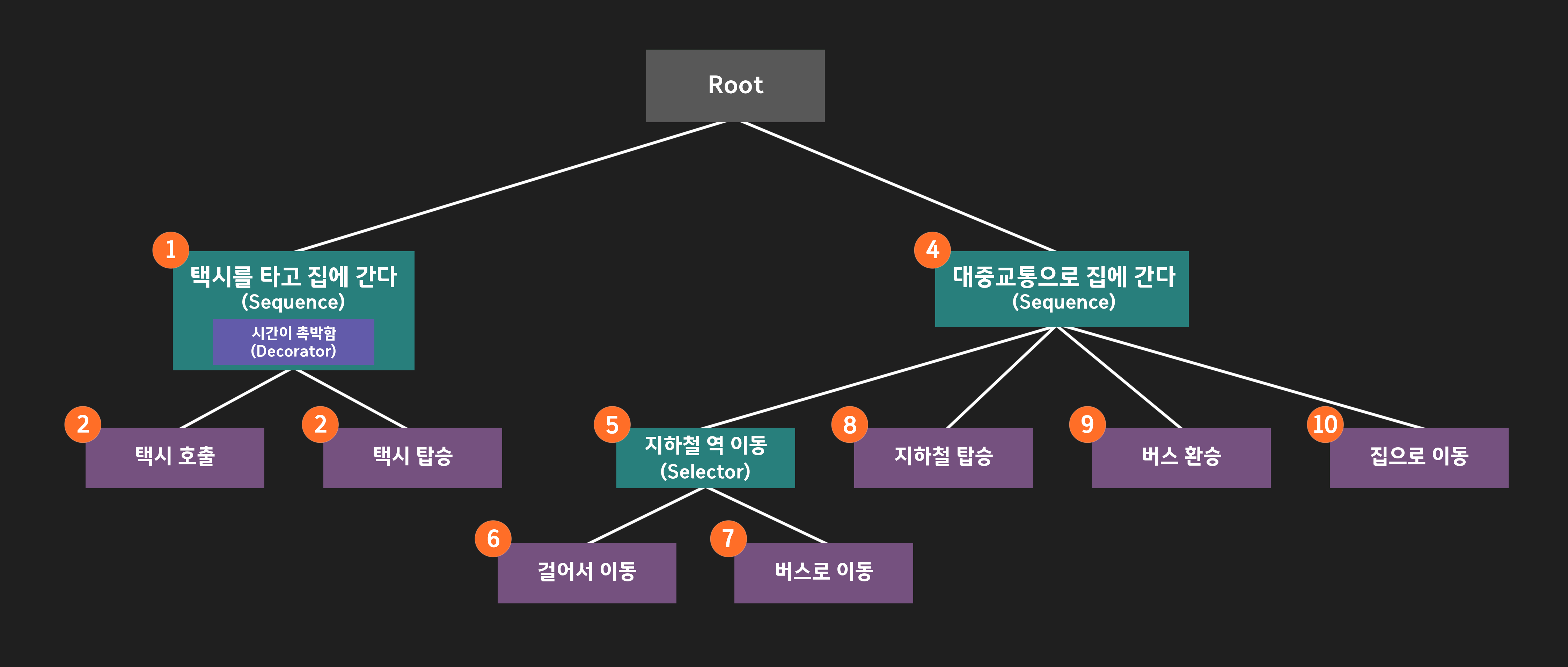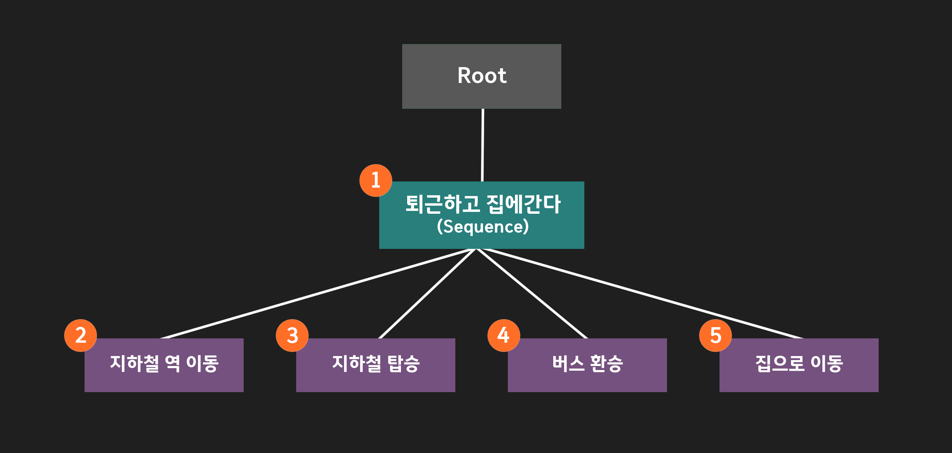 퇴근하고 집에 가는 행동에 대한 행동 트리 설정