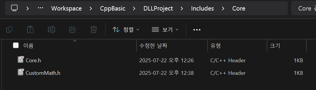 아직 만들지는 않았지만, DLL을 사용하는 프로젝트에서는 DLL 프로젝트의 헤더 파일과 lib, dll 파일들이 모두 필요하다.