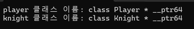 std::cout << "player 클래스 이름: " << pInfo.name() << "\n";